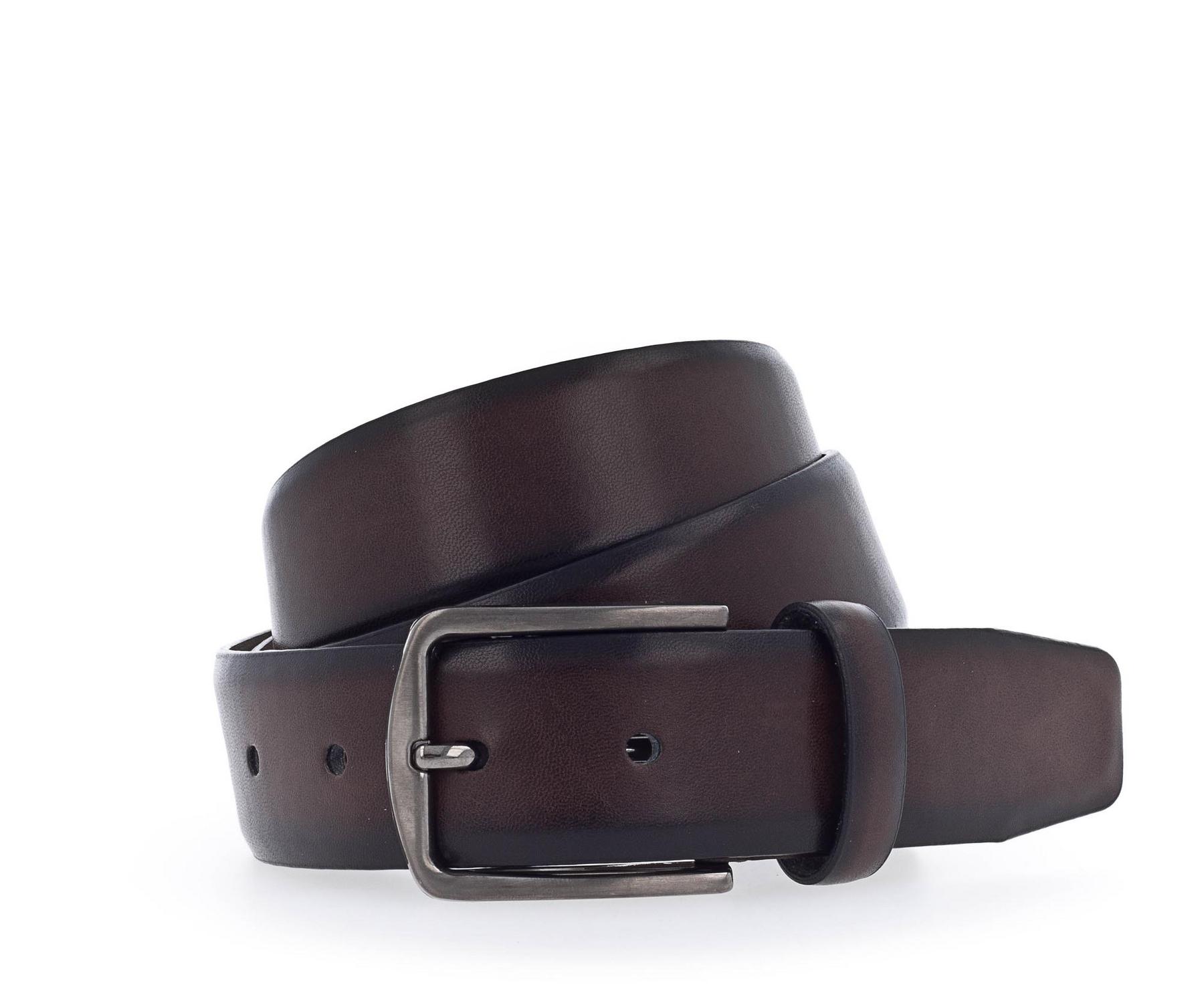 Der bombierte, kürzbare Echtleder-Gürtel ist 35 mm breit mit dunklen Airbrush und einer klassischen Dornschließe in geschwärztem Silber versehen. Durch die bombierte Einlage zwischen den Lederschichten ist der Gürtel formstabiler und erhält eine hochwertige, erhabene Haptik. Der Gürtel lässt sich mit wenigen Handgriffen und einfachen Werkzeugen kürzen. Man benötigt lediglich eine Lederschere, einen Torx-Schraubendreher und ein Maßband um die gewünschte Länge zu ermitteln. Das Material ist ein bombiertes PU-beschichtetes, regeneriertes Leder mit synthetischem Futter. Dieser Gürtel ist die ideale Ergänzung zu allen Business-Outfits und garantiert einen maskulinen und eleganten Look. MADE IN METZINGEN. Die vollständige Fertigung im Vanzetti-Headquarter, am Modestandort Metzingen beim Familienunternehmen Bazlen, garantiert ein nachhaltig hergestelltes Produkt.