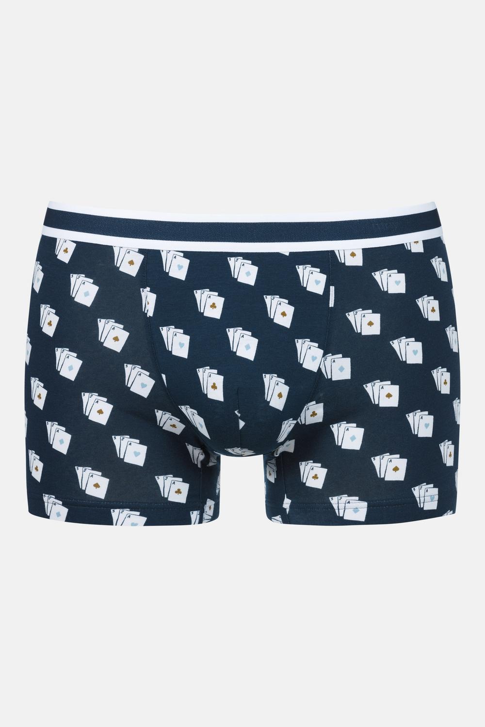 *Klassischer Sitz, kurzes Bein*Aufgesetzter Webbund*Ausgefallener Print: "Cards"*Flache Beinabschlüsse*Angenehmes Tragegefühl