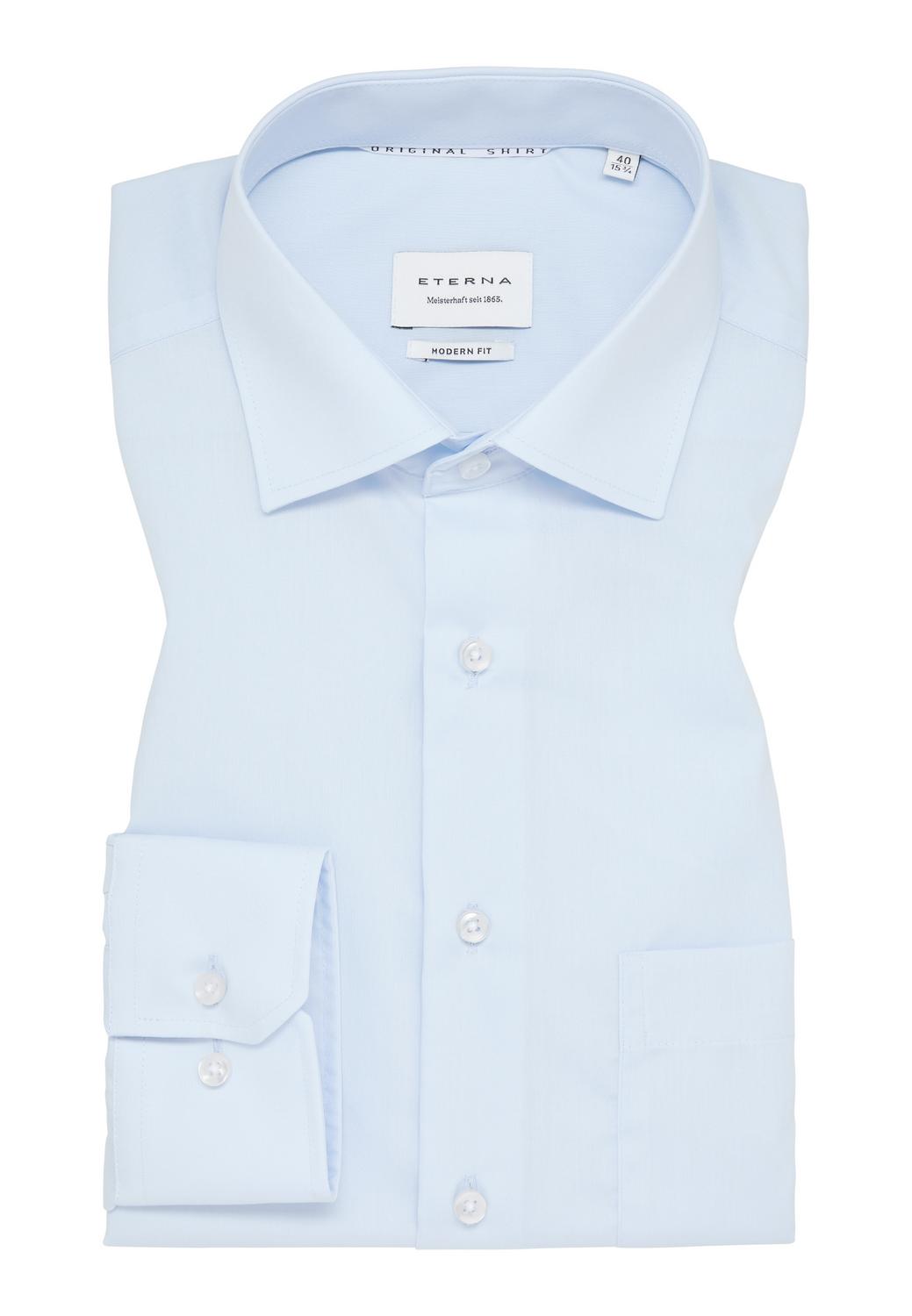 Gefertigt wurde dieses unifarbene MODERN FIT Langarmhemd mit einem Kent-Kragen und Brusttasche.