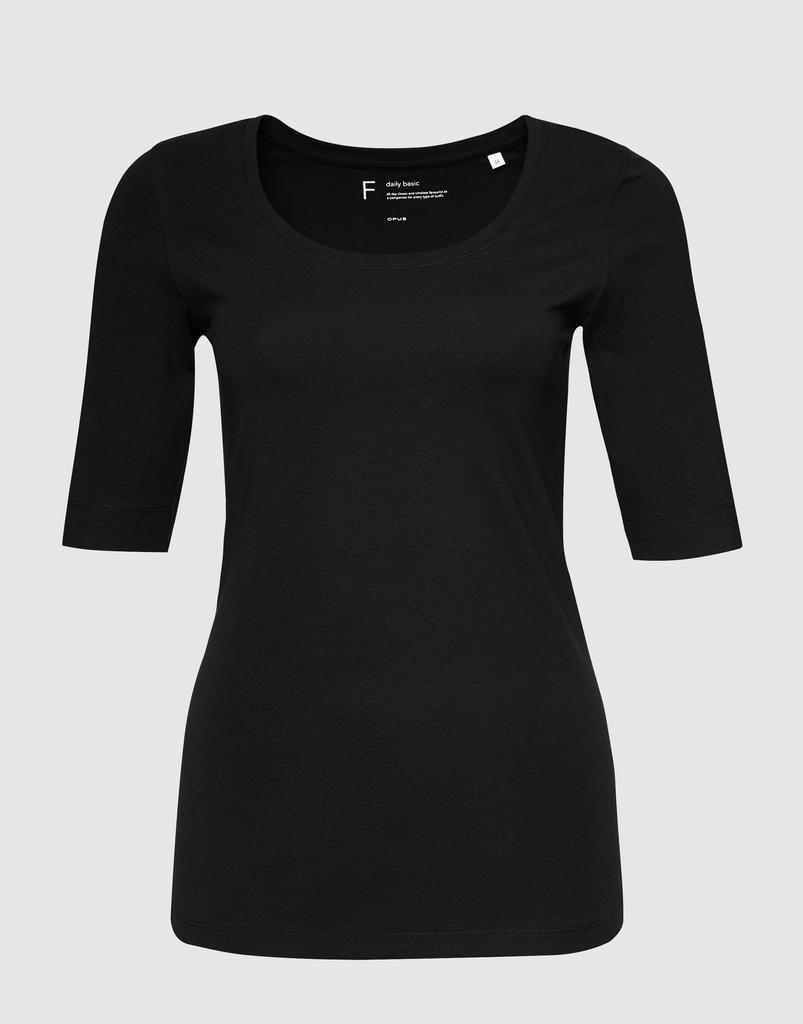Das T-Shirt aus weichem Single Jersey mit tiefem Rundhalsausschnitt liegt angenehm auf der Haut und sorgt für einen femininen Look. Ein unkomplizierter Begleiter für jeden Tag.