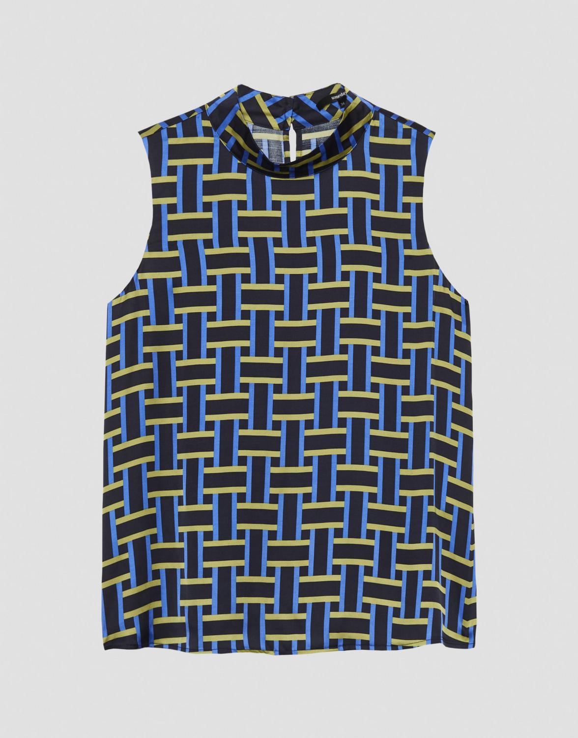 Die Printbluse aus satinierter ECOVERO™ Viskose überzeugt mit einem dynamischen Print in Flecht-Optik. Der Stehkragen schließt das Blusentop elegant ab.